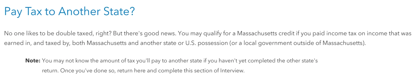 Also, there's a page in my MA tax return, titled, "Pay Tax to Another State?", which asks if I paid tax to MA and another state. Should I answer yes to this since I will have paid tax to CO for July-September too once I submit a CO Part-Year State Tax Return, or should I answer no since I wasn't double-taxed at the time (when my earnings were taxed MA taxes, but should have been taxed CO taxes)?
