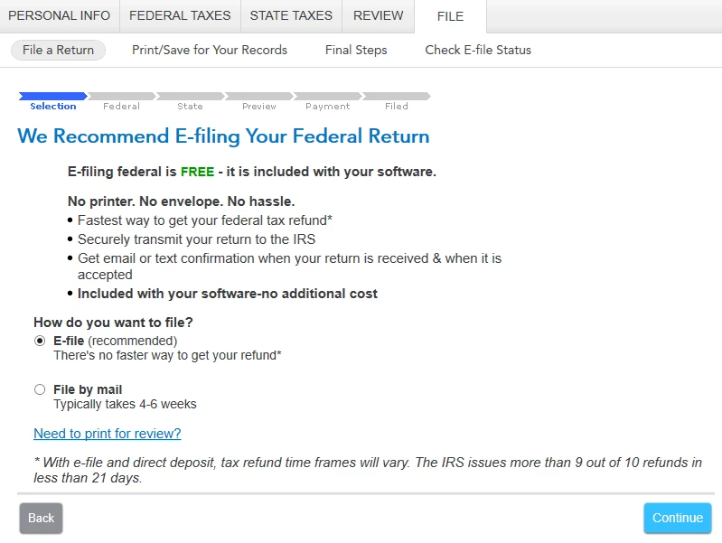 State Return (PA) stuck on e-file option, but I want to manually file via mail