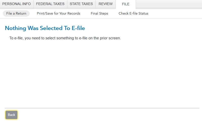However, Turbotax seems to be 'stuck' on thinking I wish to e-file my state return. If I go to the 'File' section, I can see that my federal return has already been e-filed, but my only other option for my state return is "Do not e-file my state return now, I'll do it later" (I have no desire to E-file later). If I select this option, the dialog sequence just ends saying "Nothing was selected to E-File". If I go to save the PDF documents prepared for my state return, it includes the form for "DECLARATION FOR ELECTRONIC FILING", & marks the 'E-File Opt Out' as "N" (should be "Y" for opting-out of E-file).