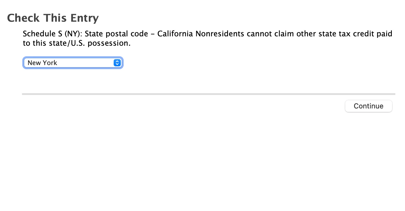 I was a California resident going to graduate school in New York (and earning income there) for the first half of the year, and then moved permanently to Massachusetts (and established residency) for the second half of the year. I filled out a NY nonresident tax form and a MA partial-year resident tax form with no issues. When I try to claim the credit for income tax paid to NY on the CA income tax form (which was earned while I was a CA resident), I get an error that says "CA nonresidents cannot claim other state tax credit paid to this state." (NY). Is this a legit error flag (i.e. I can't actually claim credit for the tax paid to NY), or is this an "undocumented feature" in TT?