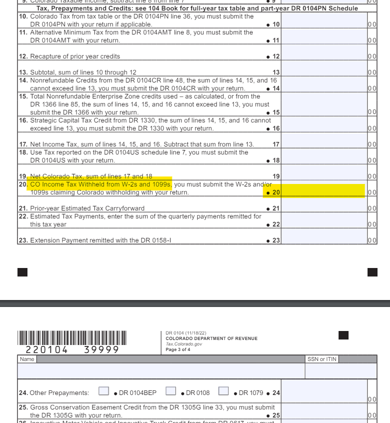 When you look at your 2022 CO return, line 20 has withholdings. You may have other payments listed amongst that section of your return. If you only had withholdings, then line 20 is the answer. Line 28 shows the total of all taxes paid plus credits.