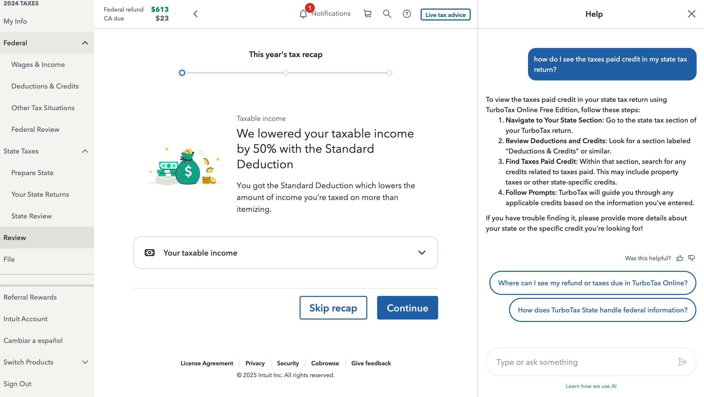 I am trying to review the "Deduction and Credits" section of my State Tax Return so that I can confirm the taxes paid credit is correct. The help says that there should be a tab labeled "Deductions and Credits" under both the Federal and State Tax Return sections. However it is only showing that label under Federal and it's showing nothing at all for State. Where can I find this section so I can check that the taxes paid credit is accurate before I submit it.