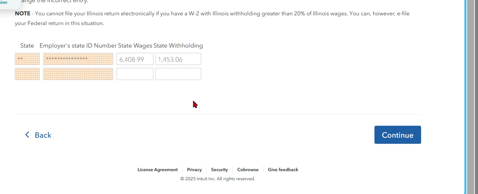 w-2 state more then 20% withhold in state taxes Illinois wages