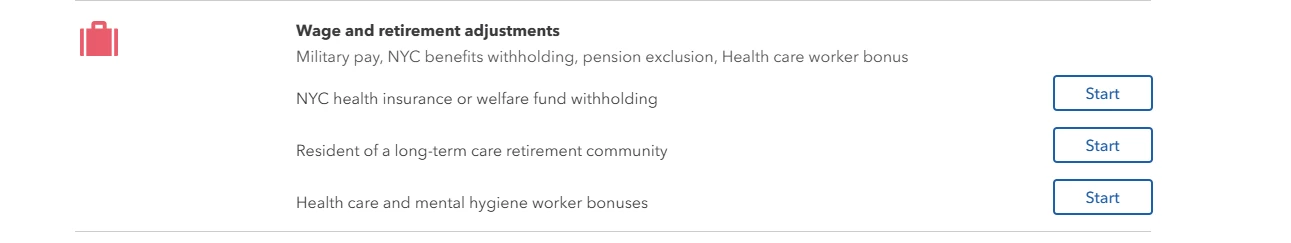I am an Active Duty Military, and NY is my home of record. Working on my return now and encountered something new. I satisfy the NY state tax code for full non-resident tax exemption, and as I have done before, working on filing the IT-203 (Nonresident) return. But this year, when I reach the "Changes to Federal Income" part, under the "Wage and retirement adjustments (Military pay, NYC benefits withholding, pension exclusion, Health care worker bonus)," there is no "Military Pay" button, so I can't properly enter my tax exemption, and a s a result can't get the full refund. Please help - how do I solve this?